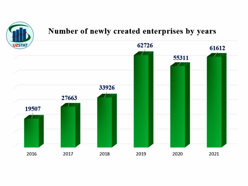 In the republic in January-July, the number of newly created enterprises and organizations (excluding farms and dekhkan farms) increased by 3.1 times compared to the corresponding period of 2016, the following was noted in the context of years: