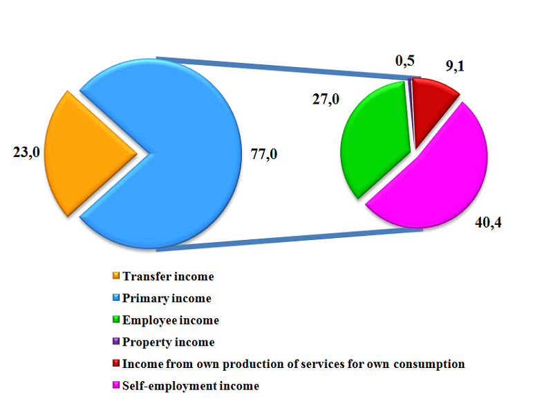 The share of income from production of services for own consumption in the total volume of total income of the population was 9.1%, income from property - 0.5% and income from transfers - 23.0%.