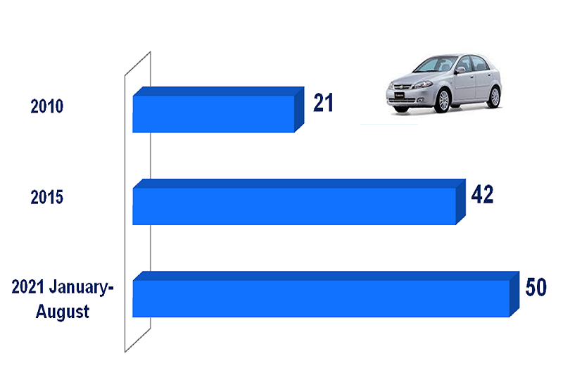 According to the data of sample surveys of households by the State Committee on Statistics, in January-August 2021, the number of cars per 100 households was 50 units. For reference: in 2010 this figure was 21, in 2015 - 42.