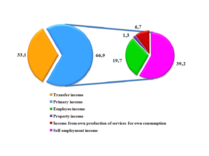 The share of income from the production of services for own consumption in the total volume of total income of the population was 6.7%, income from property - 1.3% and income from transfers - 33.1%.