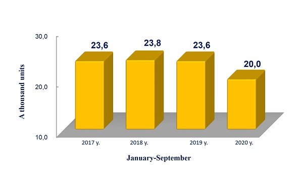 In January-September 2020, the registry office registered 19,970 divorces, which indicates a significant decrease in the figure compared to the same period last year.