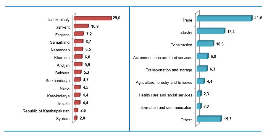 And also, the distribution by regions and types of economic activity 2,142 small enterprises and microfirms, who rated the economic situation as unsatisfactory.
