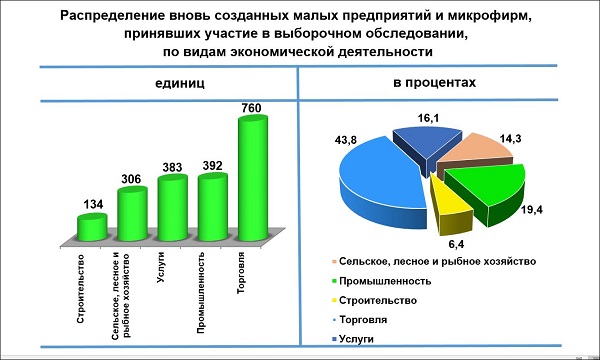 At the end of the third quarter of 2020, a sample survey of the activities of newly created small enterprises and microfirms was conducted, in which 1,975 respondents took part, including by type of economic activity: