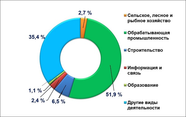 According to statistics, the largest share of enterprises and organizations that have introduced innovations by type of economic activity in the Republic of Uzbekistan in 2019 was noted in the industry (51.9%).