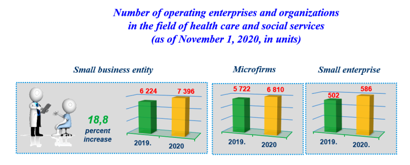 In January-October 2020, 1,255 new enterprises and organizations were created in the field of health care and social services; as of November 1, 2020, the total number of operating enterprises and organizations in this area was 8,953.