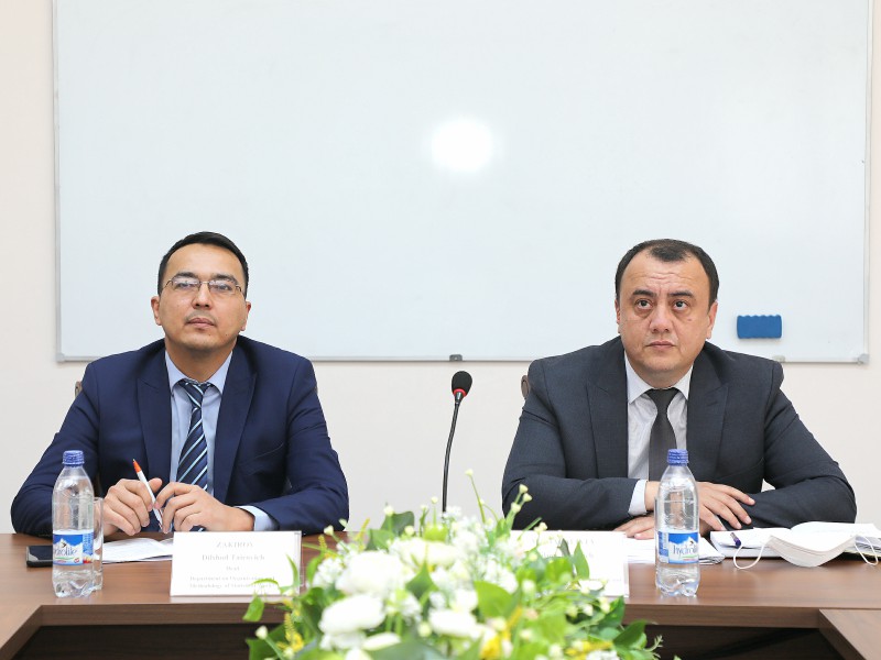 On behalf of the State Committee on Statistics, the meeting is attended by the Head of the Department of International Cooperation and Data Exchange Odiljon Mamadaliev and the Head of the Department on Organization and Methodology of Statistical Works Dilshod Zakirov.