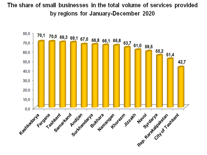 In January-December 2020, the share of small businesses in the total volume of services provided amounted to 51.5%.
