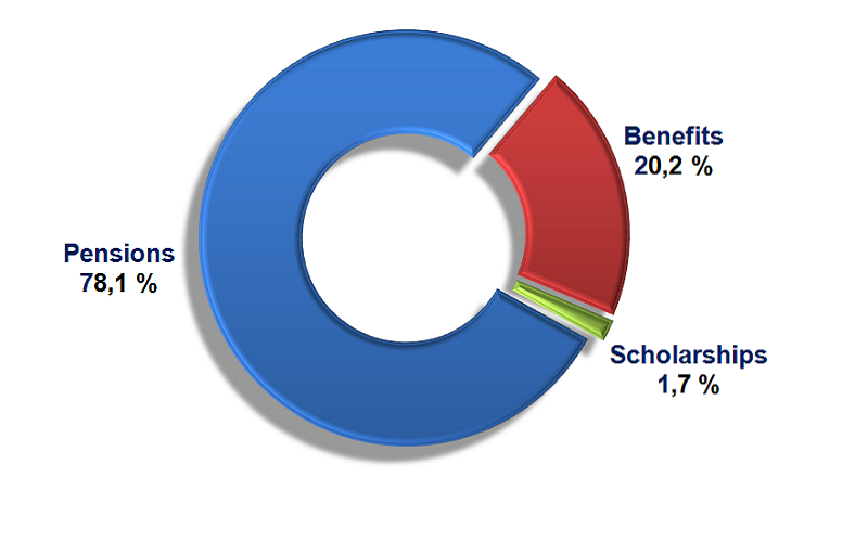 According to preliminary data for January-March 2021, the share of pensions in the structure of social transfers is 78.1%, benefits – 20.2% and scholarships – 1.7 %.