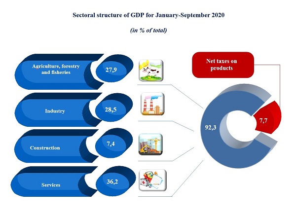 According to preliminary data, for 9 months of 2020, the gross domestic product (GDP) of Uzbekistan increased by 0.4%, compared with the same period last year (for 9 months of 2019 - by 5.9%).