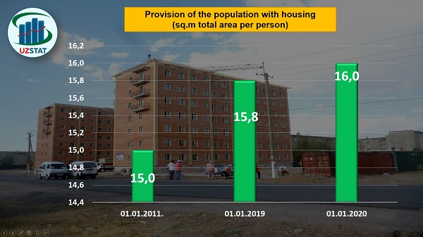The total area of residential premises per person, on average, compared to 2011, increased from 15.0 square meters to 16.0 square meters (by 1.0 square meters).