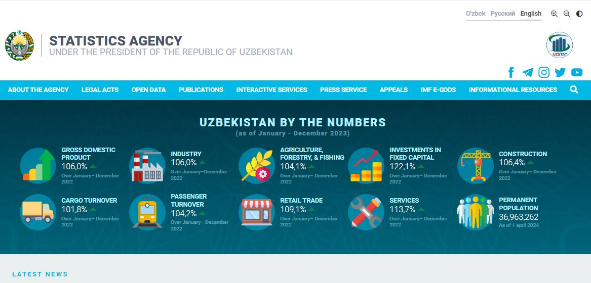 The official statistics published in the "Open data" column of the official website of the Agency of Statistics (stat.uz) have been integrated with the integrated information system "Statistics" (siat.stat.uz).