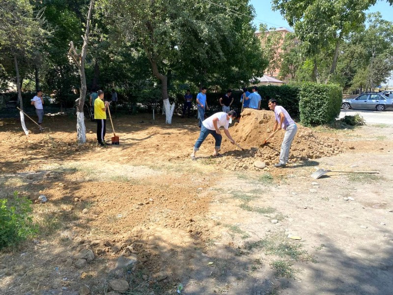 Команда Государственного комитета по статистике и Управления статистики города Ташкента организовала хашар в целях благоустройства и озеленения населенных пунктов в махалле Ёркин хаёт Янгихаятского района г. Ташкента.