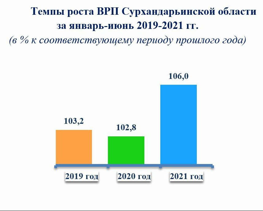 По итогам января-июня 2021 года в Сурхандарьинской области ВРП вырос на 6,0 % и составил 13 530,5 млрд. сум.