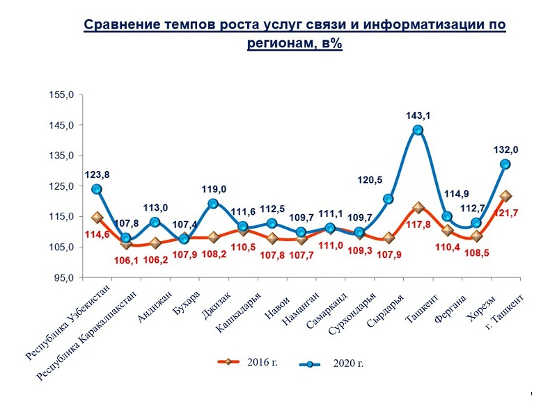 В 2020 году темпы роста объема услуг связи и информатизации составили 123,8%.
