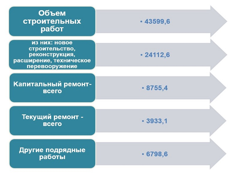 Распределение строительных работ, выполненных малыми предприятиями и микрофирмами за 2020 год, млрд. сум