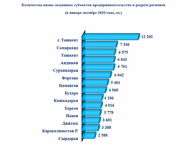 По итогам 10 месяцев 2020 года количество субъектов предпринимательства составило 401 727 ед., увеличившись по сравнению с соответствующим периодом прошлого года на 21,7%.