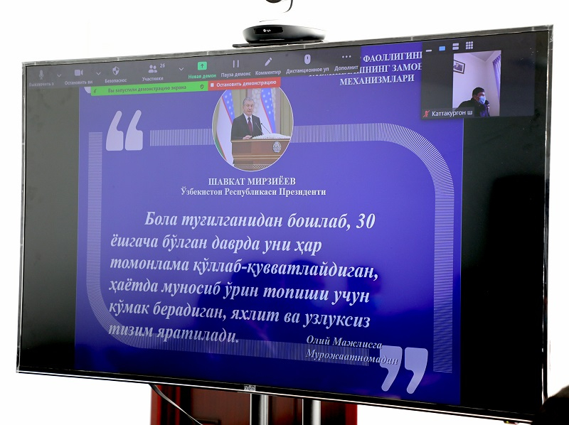 Сотрудники территориальных статистических управлений приняли участие в мероприятии в режиме онлайн. На встрече подробно говорилось о сути и содержании послания главы государства Олий Мажлису. Представители Узбекского государственного университета физической культуры и спорта – доктор философских наук Бариддин Примов, заместитель декана Ойбек Очилов, заведующий кафедрой Жамшид Умаров подробно рассказали о задачах, поставленных в Послании.