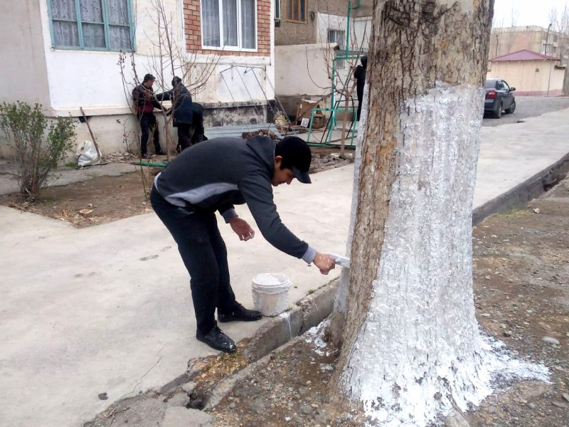 Также на территории махалли были побелены деревья, высажены саженцы.