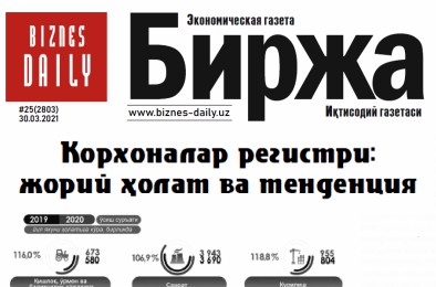 В газете “Биржа” №25 от 30 марта 2021 года опубликована статья Заместителя Председателя Госкомстата Зохиджона Зияева и начальника Управления Нурбека Шералиева под названием “Регистр предприятий: текущая ситуация и тенденции”.