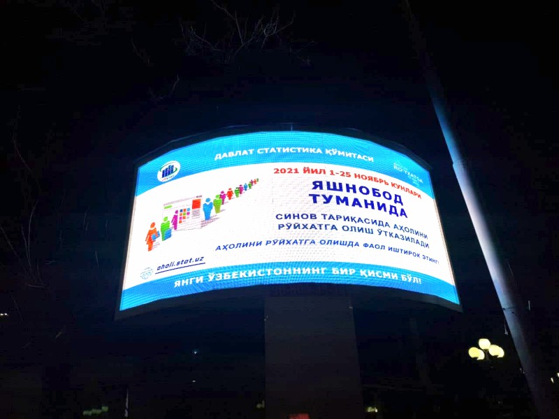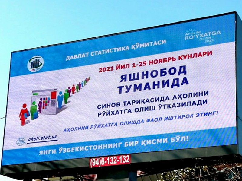 O‘zbekiston Respublikasi Vazirlar Mahkamasining 2020- yil 11- noyabrdagi 710- son qaroriga muvofiq, aholini sinov tariqasida ro‘yxatga olish tadbiri 2021- yil 1–25- noyabr kunlari Andijon viloyatining Xo‘jaobod tumani, Toshkent viloyatining Yuqori Chirchiq tumani, Xorazm viloyatining Xiva shahri hamda Toshkent shahrining Yashnobod tumanida o‘tkazilishi rejalashtirilgan.