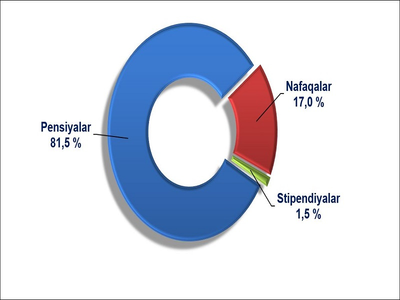 2021- yilning yanvar-iyun oylari dastlabki ma’lumotlarga ko‘ra, ijtimoiy transfertlar tarkibida pensiyalar 81,5 % ni, nafaqalar 17,0 % ni, stipendiyalar 1,5 % ni tashkil etdi.