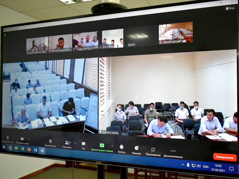 2021- yil 7- sentabr kuni Davlat statistika qo‘mitasi raisi Begalov Baxodir Abdusalomovich raisligida sinov tariqasida aholini ro‘yxatga olish jarayonlariga tayyorgarlik ishlari, tashkiliy masalalar va ro’yxatga oluvchilarni ishga qabul qilish masalalari bo‘yicha videokonferensaloqa tarzida yig’ilish o‘tkazildi.