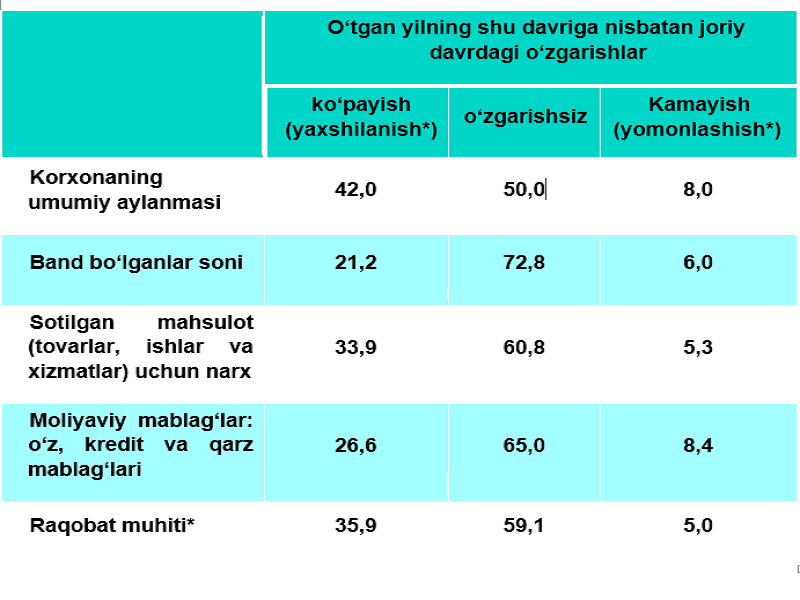 2021- yilning II choragida biznesga ishonch muhitini baholash, %da
