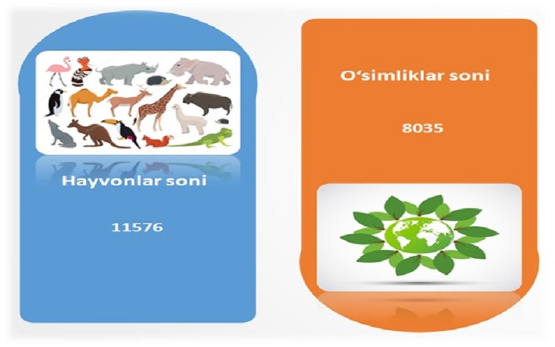 Mamlakatimiz hayvonot bog‘larida mavjud bo‘lgan turli xildagi hayvonot va o‘simlik namunalari o‘zining beqiyosligi bilan tashrif buyuruvchilarni o‘ziga jalb etadi. Hayvonot bog‘larida jami 11576 ta hayvon hamda 8035 ta o‘simlik nusxalari mavjud.