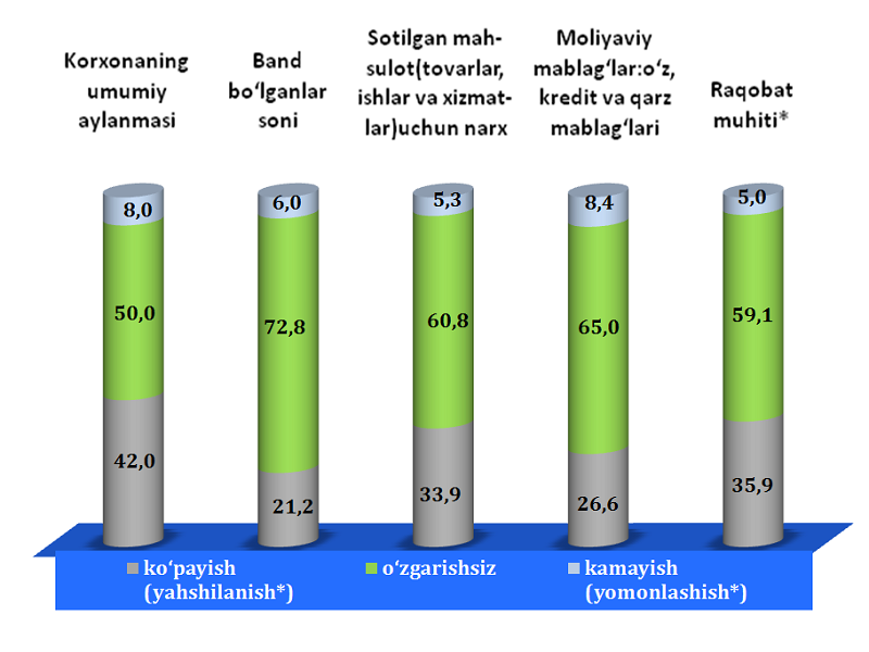 2021- yilning II choragida biznesga ishonch muhitini baholash,o‘tgan yilning shu davriga nisbatan joriy davrdagi o‘zgarishlar, %da