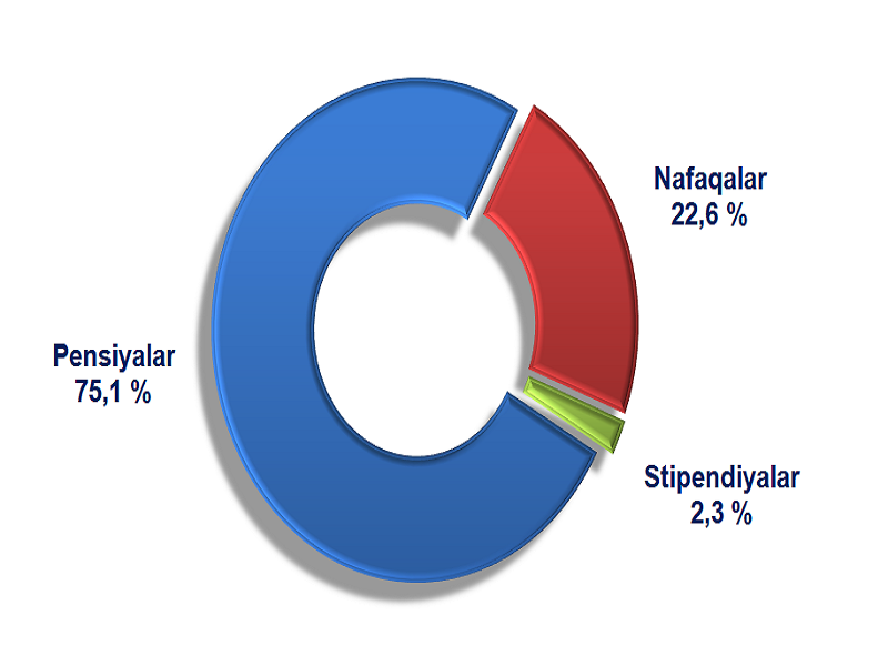 2021- yilning yanvar-iyun oylari dastlabki ma’lumotlarga ko‘ra, ijtimoiy transfertlar tarkibida pensiyalar 75,1 % ni, nafaqalar 22,6 % ni, stipendiyalar 2,3 % ni tashkil etdi.