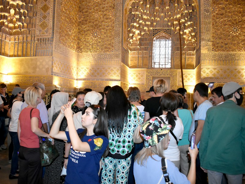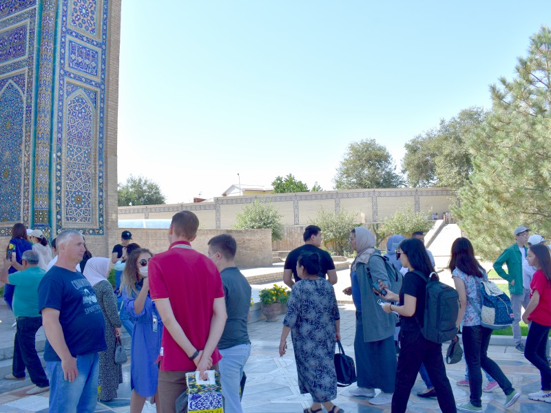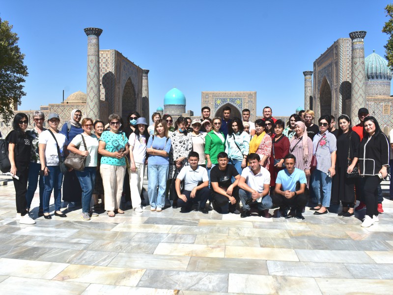 Sayyohlar dastlab Registon majmuasiga tashrif buyurdilar. Ushbu majmua o‘quv muassasalari sifatida xizmat qilgan Ulug‘bek madrasasi, Sherdor madrasasi va Tillaqori madrasasi kabi uchta hashamatli binolar ansamblini tashkil etadi. Samarqandning tarixiy markazi hisoblangan Registon maydoni o‘zining qadimiy me'morchiligi go‘zalligi va ulug‘vorligi bilan хodimlarni o‘ziga jalb etdi.