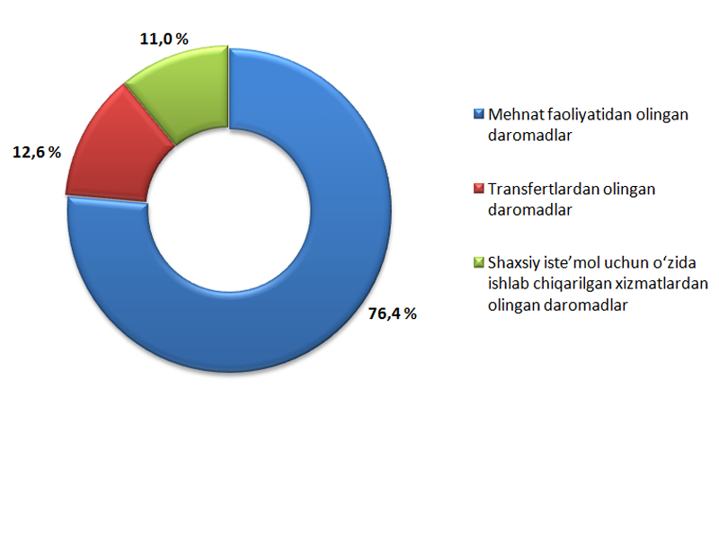 2021- yilning yanvar-sentabr holatiga ko‘ra, Navoiy viloyati aholisining umumiy daromadlari hajmining o‘sishi asosan umumiy daromadlar tarkibida 76,4 % ulushga ega bo‘lgan mehnat faoliyatidan olingan daromadlar va 12,6 % ni tashkil etuvchi transfertlardan olingan daromadlarning sezilarli o‘zgarishi hisobiga yuzaga kelgan.
