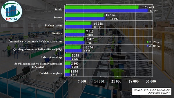 Iqtisodiy faoliyat turlari kesimida korxonalar quyidagicha taqsimlandi: