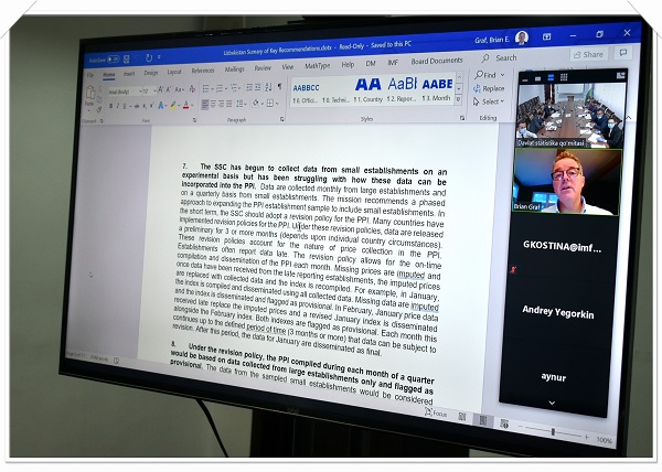 2020- yil 6- noyabr kuni Davlat statistika qo’mitasida Xalqaro valyuta jamg'armasining statistika boshqarmasi real sektor bo'limi katta iqtisodchisi Brayan Graf boshchiligidagi Xalqaro valyuta jamg'armasining ishlab chiqaruvchilar narxlari indekslari statistikasi bo'yicha masofaviy texnik yordam missiyasi bilan yakuniy yig'ilishi onlayn tarzda bo'lib o'tdi.