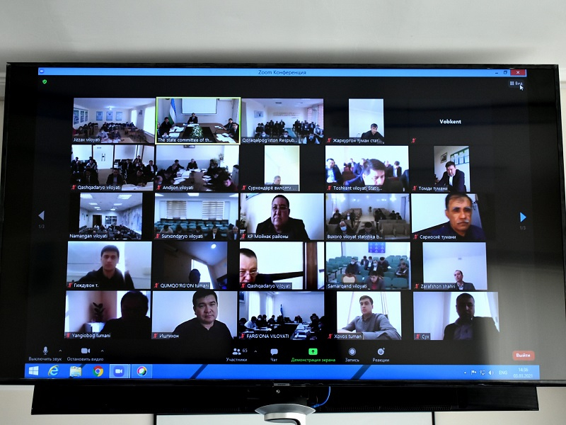 Davlat statistika qo‘mitasi raisi o‘rinbosari Maxmudjon Ziyadullayev boshchiligida o’tkazilgan mazkur vebinarda Ro‘yxatga olish jarayonlarini tashkil etish va o‘tkazish boshqarmasi boshlig‘i Qobil Berdiqulov, bo‘lim boshliqlari hamda hududiy statistika boshqarmalari vakillari ishtirok etdi.