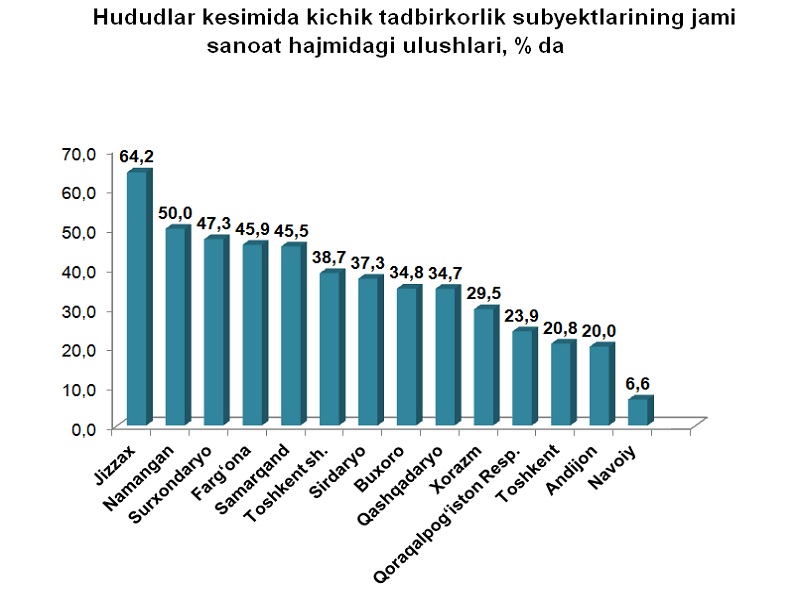 Kichik tadbirkorlik subyektlarining sanoat mahsulotlarini ishlab chiqarishdagi ulushi – 27,5 % ga yetdi.