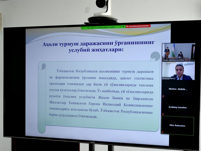 Taqdimot davomida aholi turmush darajasi kuzatuvlarini tashkil qilish va o‘tkazish borasida batafsil ma'lumot berildi.