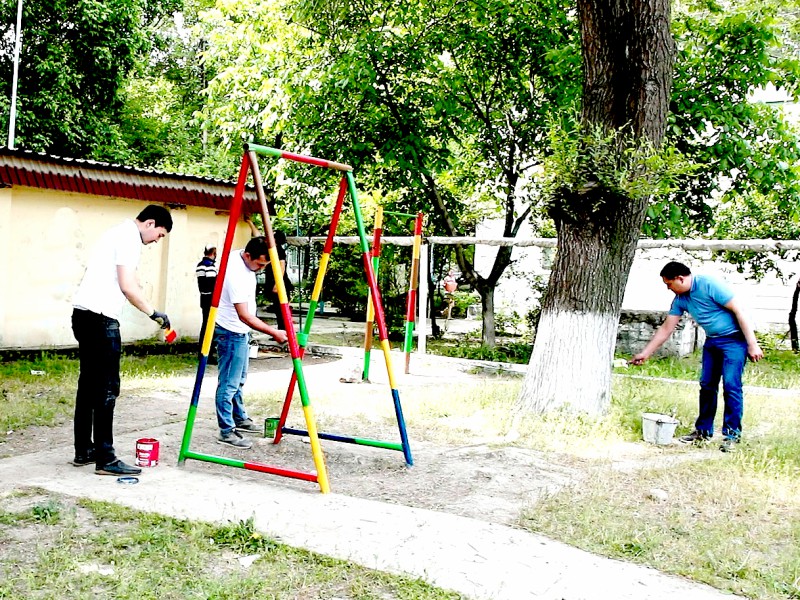 Mahalla hududida joylashgan ko‘p qavatli uylarning yonidagi bolalar maydonchasidagi o‘yin jihozlari va o‘rindiqlar turli ranglarda bo‘yalib, foydalanishga topshirildi.