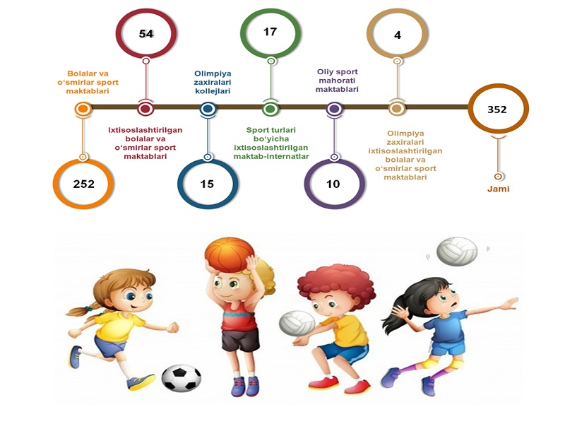2021- yil 1- yanvar holatiga 352 ta sport-ta’lim muassasalari faoliyat ko‘rsatgan.