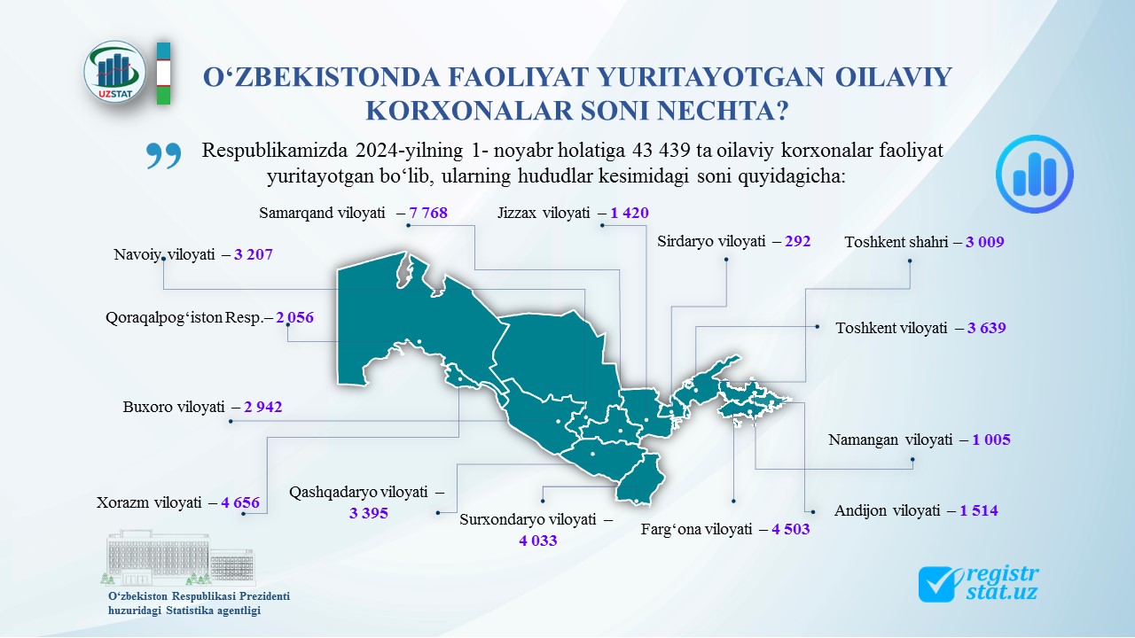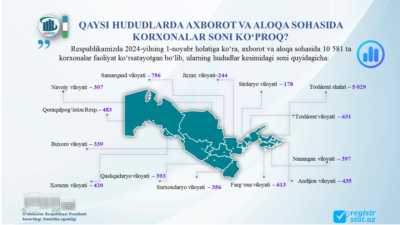 Joriy yilning 18-noyabr kuni Oʻzbekiston Respublikasi Prezidenti huzuridagi Statistika agentligida Qoraqalpogʻiston Respublikasi, viloyatlar va Toshkent shahar statistika boshqarmalarining Xizmatlar sohasi statistikasi boʻlimi xodimlari uchun xizmatlar sohasi statistikasiga oid koʻrsatkichlar va ularni shakllantirish tartibi boʻyicha amalga oshirilayotgan ishlar holati hamda kelgusidagi ustuvor vazifalar yuzasidan onlayn vebinar tashkil etildi.
