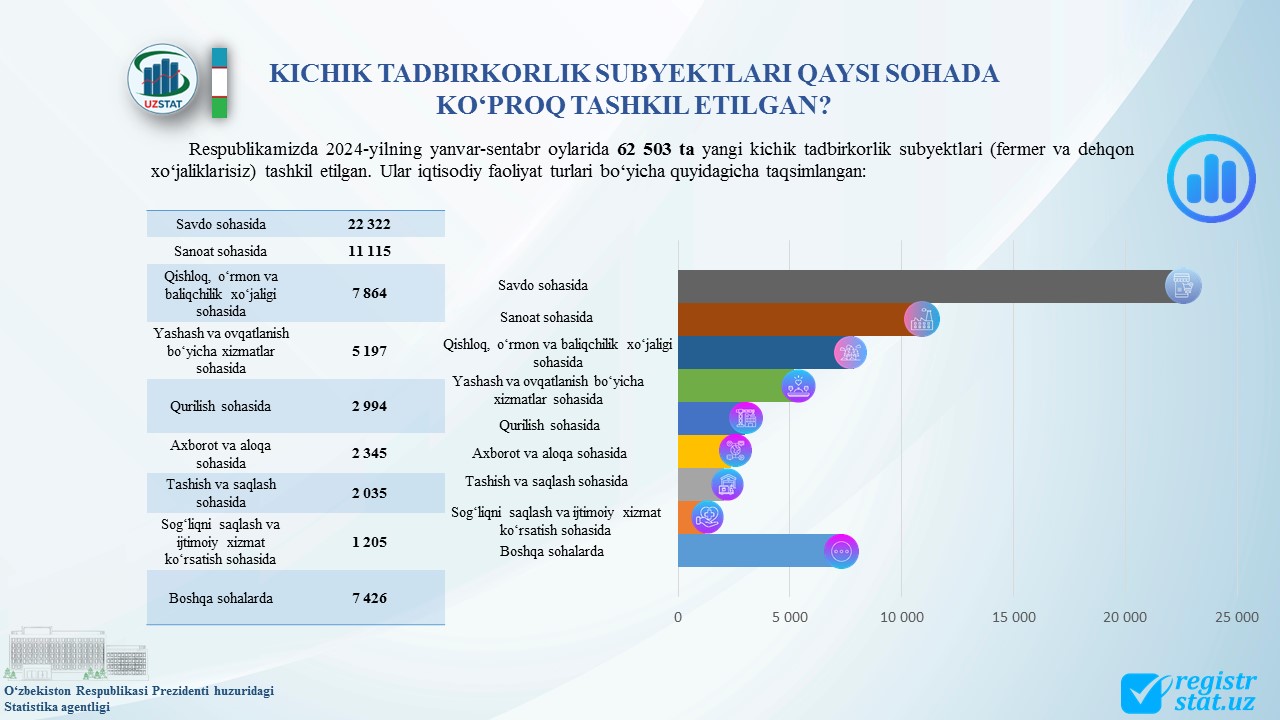 Joriy yilning 31- oktabr kuni Oʻzbekiston Respublikasi Prezidenti huzuridagi Statistika agentligida Qoraqalpogʻiston Respublikasi, viloyatlar va Toshkent shahar statistika boshqarmalarining Xizmatlar sohasi statistikasi boʻlimi xodimlari uchun xizmatlar sohasi statistikasiga oid koʻrsatkichlar va ularni shakllantirish tartibi boʻyicha amalga oshirilayotgan ishlar holati hamda kelgusidagi ustuvor vazifalar yuzasidan onlayn vebinar tashkil etildi.