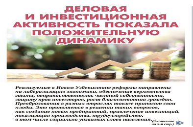 “Правда Востока” gazetasining 2024-yil 25-iyuldagi 148-sonida Oʻzbekiston Respublikasi Prezidenti huzuridagi Statistika agentligining maʼlumotlari asosida “Biznes va investitsiya faoliyati ijobiy dinamikani koʻrsatdi” nomli maqola chop etildi.