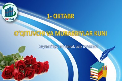 Davlat statistika qo‘mitasi jamoasi yurtimizdagi barcha ustoz va murabbiylarlarni 1- oktabr – O‘qituvchi va murabbiylar kuni bilan samimiy muborakbod etadi.