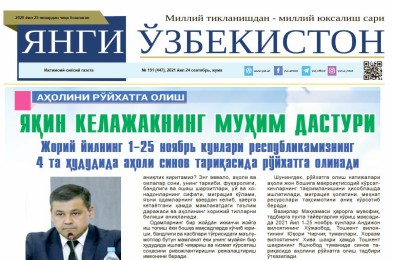 “Янги Ўзбекистон” gazetasining 2021- yil 24- sentabr 191- sonida Davlat statistika qo‘mitasi Ro'yxatga olish jarayonlarini tashkil etish va o'tkazish boshqarmasi boshlig'i Berdiqulov Qobil G’ulomovichning “Yaqin kelajakning muhim dasturi: joriy yilning 1–25 noyabr kunlari respublikamizning 4 ta hududida aholi sinov tariqasida ro'yxatga olinadi” mavzusidagi maqolasi chop etildi.