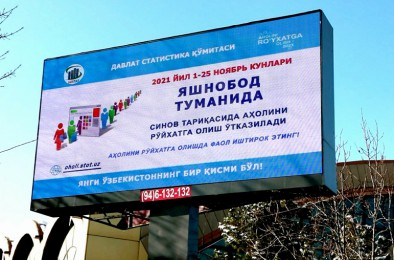 O`zbekiston Respublikasida aholini ro`yxatga olish tadbiri 2023- yilning 1–25- noyabr kunlari o`tkaziladi. Shuningdek, aholini ro`yxatga olish jarayoni va barcha me'yoriy hujjatlarni sinovdan o`tkazish maqsadida 2021- yilning 1–25- noyabr kunlari Andijon viloyatining Xo`jaobod tumani, Toshkent viloyatining Yuqori Chirchiq tumani, Xorazm viloyatining Xiva shahri hamda Toshkent shahrining Yashnobod tumanida sinov tariqasida aholini ro`yxatga olish tadbiri o`tkazilishi belgilangan.