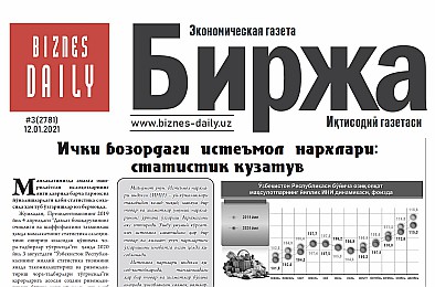 “Биржа” gazetasining 2021- yil 12- yanvardagi 3- sonida Davlat statistika qo’mitasi raisining birinchi o’rinbosari Dilshod Xolmurodov va Narxlar statistikasi boshqarmasi boshlig’i Muxtor Umarovning “Ichki bozordagi iste’mol narxlari: statistik kuzatuv” sarlavhali maqolasi chop etildi.