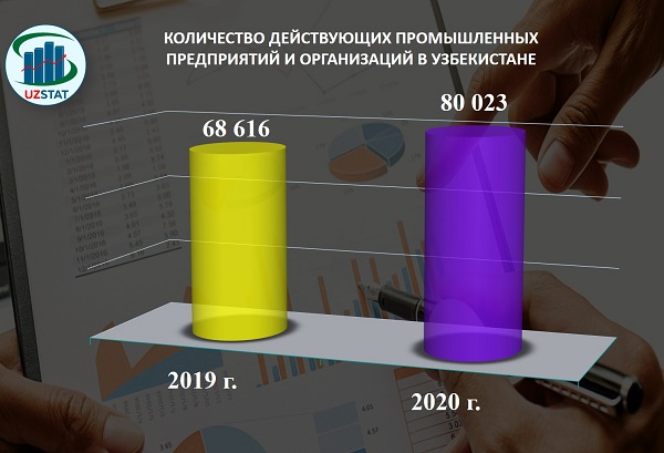Анализ промышленных предприятий и организаций, функционирующих в Узбекистане, показал, что в результате реформ, направленных на изменение форм собственности и реструктуризацию отраслей промышленности, по состоянию на 1 октября 2020 года их количество в промышленности составило 80 023 ед., что на 16,6 % больше, чем за аналогичный период прошлого года.